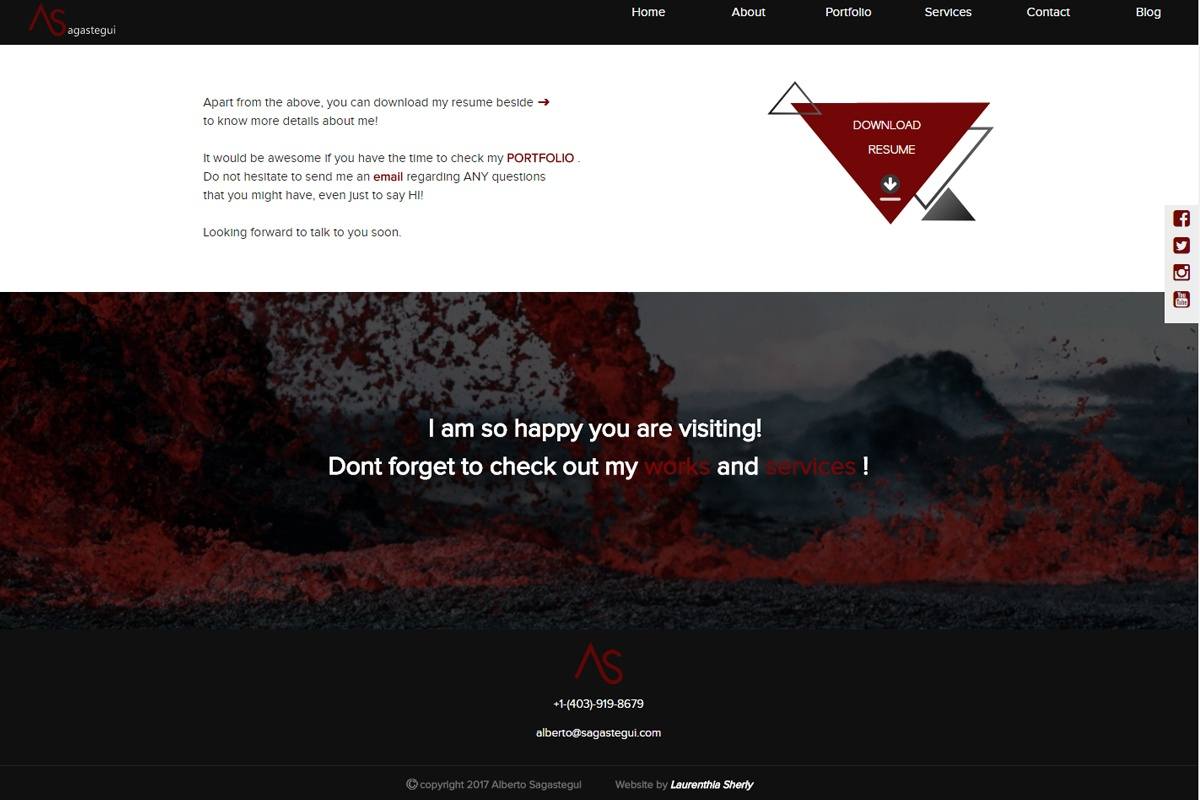 Alberto is a Visual Effect Artist that needs a website to show case his works to people. He prefers the website to be dark colour with a touch of red. To create a better branding for himself, he also wants a logo that looks a little bit geomteric with his last name on it. Creating this website was very fun and challenging as I have never done this specific style before. It was a great experience.